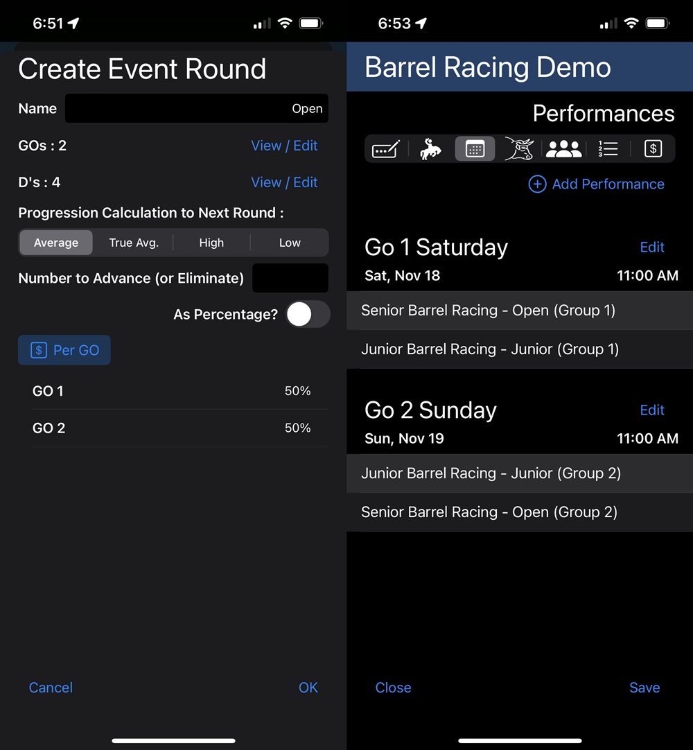 We are excited to announce that the Barrel Racing SystemTM is now replaced by our new RodeoReadyTM App. The app encompasses the full slate of barrel racing features. The RodeoReady App is available on iOS for iPhones and iPads as well as for Android phones. RodeoReady is an extremely powerful App that provides full management tools for barrel racing Organizations to manage jackpots and ful seasons including setting up your show schedule, taking entries and payments, managing draws, entering times, calculating results and payouts, and displaying jackpot and season standings. This is all done within the convenience of our App and all data is stored securely in the cloud so you never have to worry about losing data or device malfunctions.